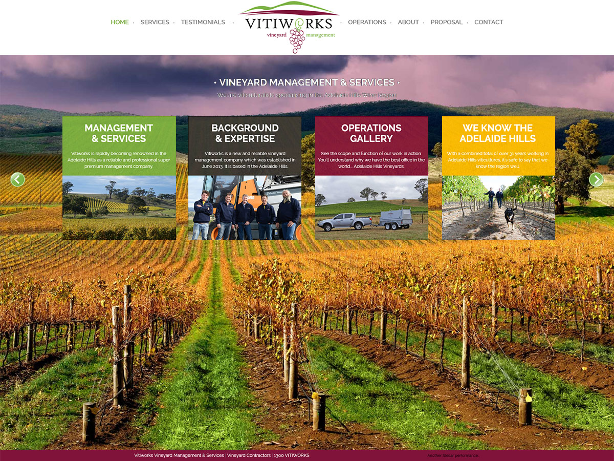 Client Vitiworks Vineyard Management www.vitiworks.com.au Our Task Website design Solution & Outcome Designed a site to showcase the stunning wine region