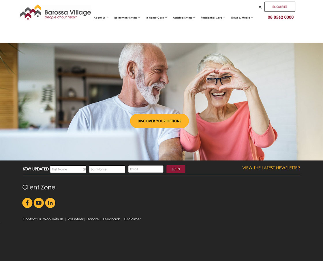 Client Barossa Village www.barossavillage.org Our Task New website with easy-to-read text. Engaging video creation. Solution & Outcome Built a refreshed website that is user friendly and easy to read. Features of the site include a newsletter function, calendar of rostered activities, unit vacancy listings and enquiry forms. We also shot and produced a video to…
