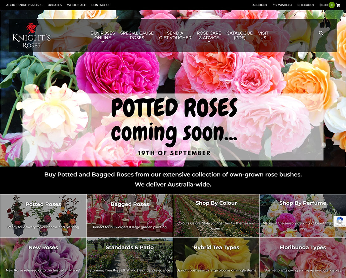 Client Knight's Roses www.knightsroses.com.au Our Task Create an e-commerce website to facilitate online access to beautiful roses. Solution & Outcome We created a website that showcases the beautiful roses grown by the experts at Knight's. This included custom rose categories, featured roses, and an easy to use online store.
